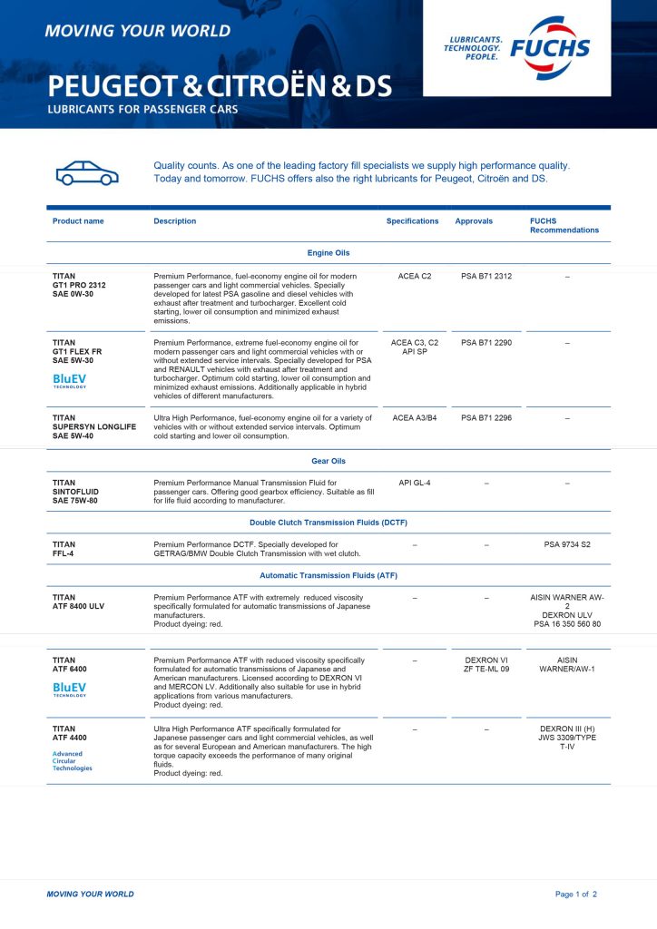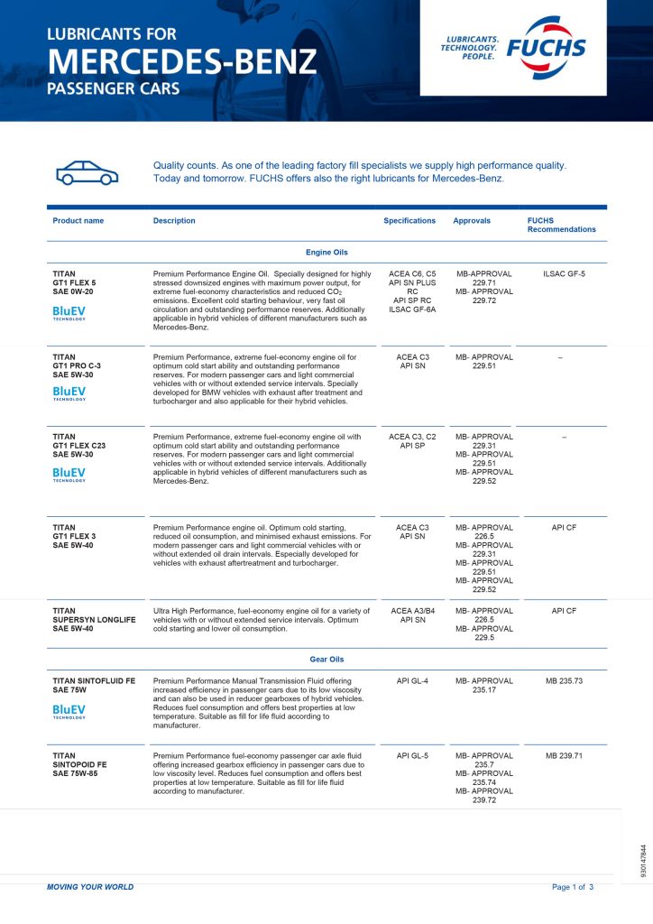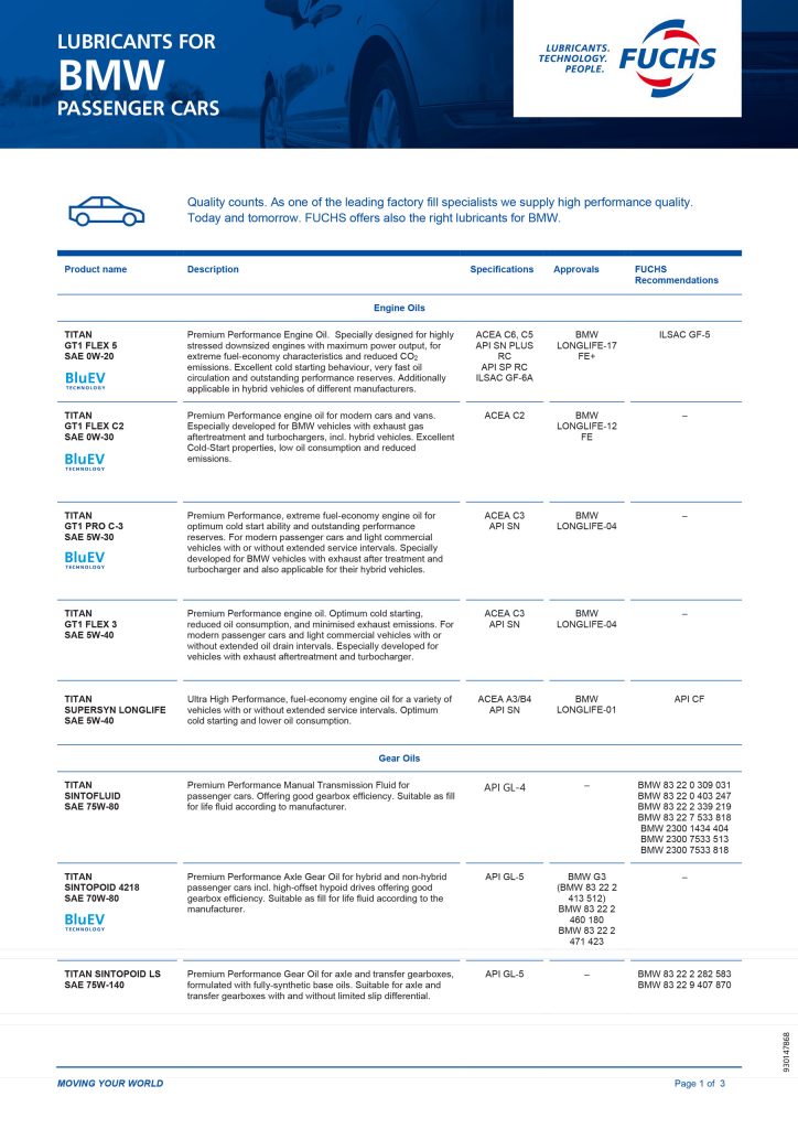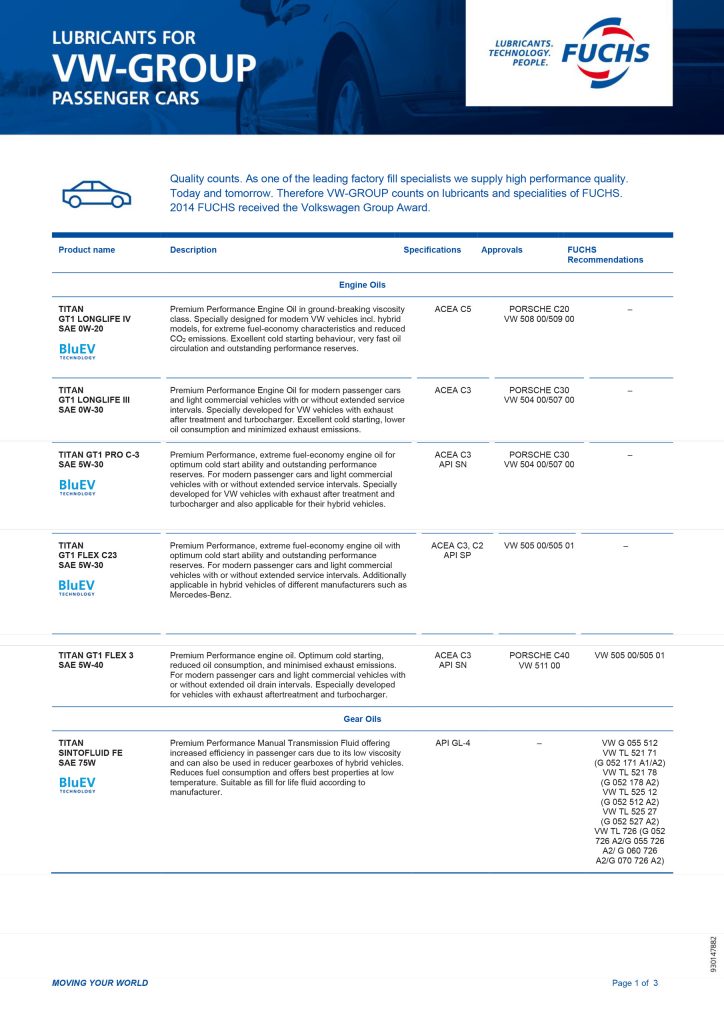 Trusted by workshops worldwide, FUCHS delivers precision-made lubricants built for European performance, offering OEM-approved formulations suitable for selected vehicles within BMW, Mercedes-Benz, Porsche, Audi and Volkswagen.
